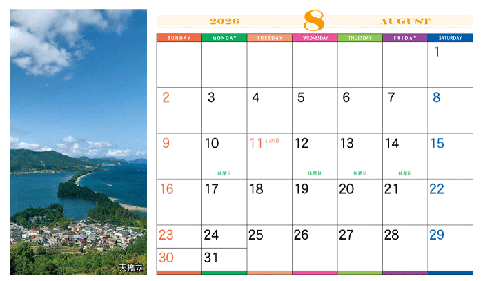 - ・8/11~8/16までお盆期間につき休業日とさせていただきます。